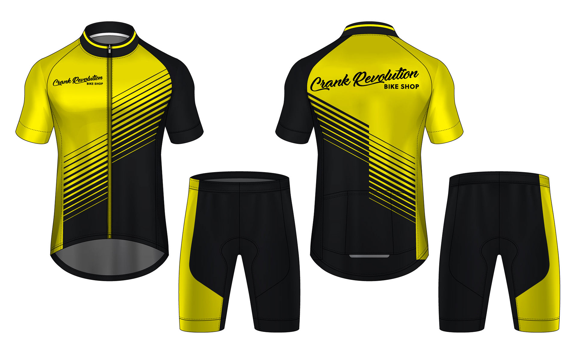 Crank Revolution is an independent bike shop that came to me for a full rebrand. They wanted a new logo system that felt bold, modern, and rooted in classic Americana. Some Route 66, mid-century road signs, and a little hot rod grit. The goal was to keep their signature yellow and black color palette while bringing more personality and polish to the brand.